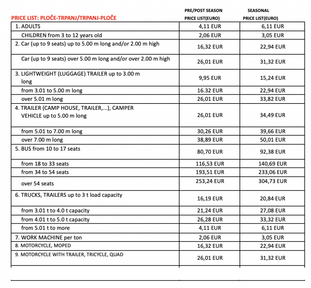 2024 Trpanj to Ploce Ferry Prices